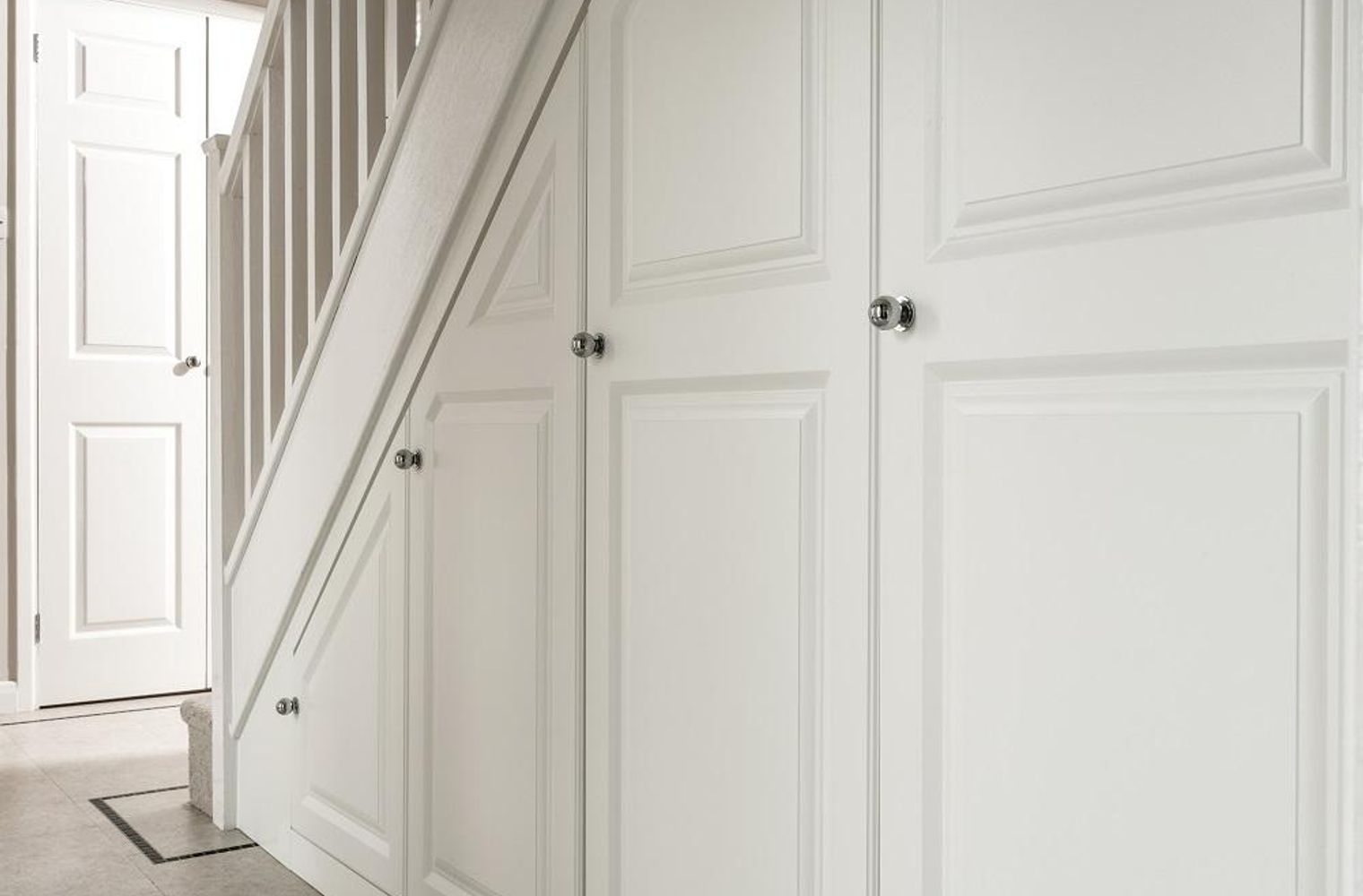 Penyimpanan penarik atau laci besar di sini membuat sebagian besar ruang tersedia. Rak-rak yang cukup besar, dan yang agak kecil untuk menampung sepatu, dan tepian rak kecil memastikan sepatu tidak jatuh keluar setiap kali pintu dibuka. Jika Anda lebih suka rak tarik tanpa pegangan, pertimbangkan model fitting push.